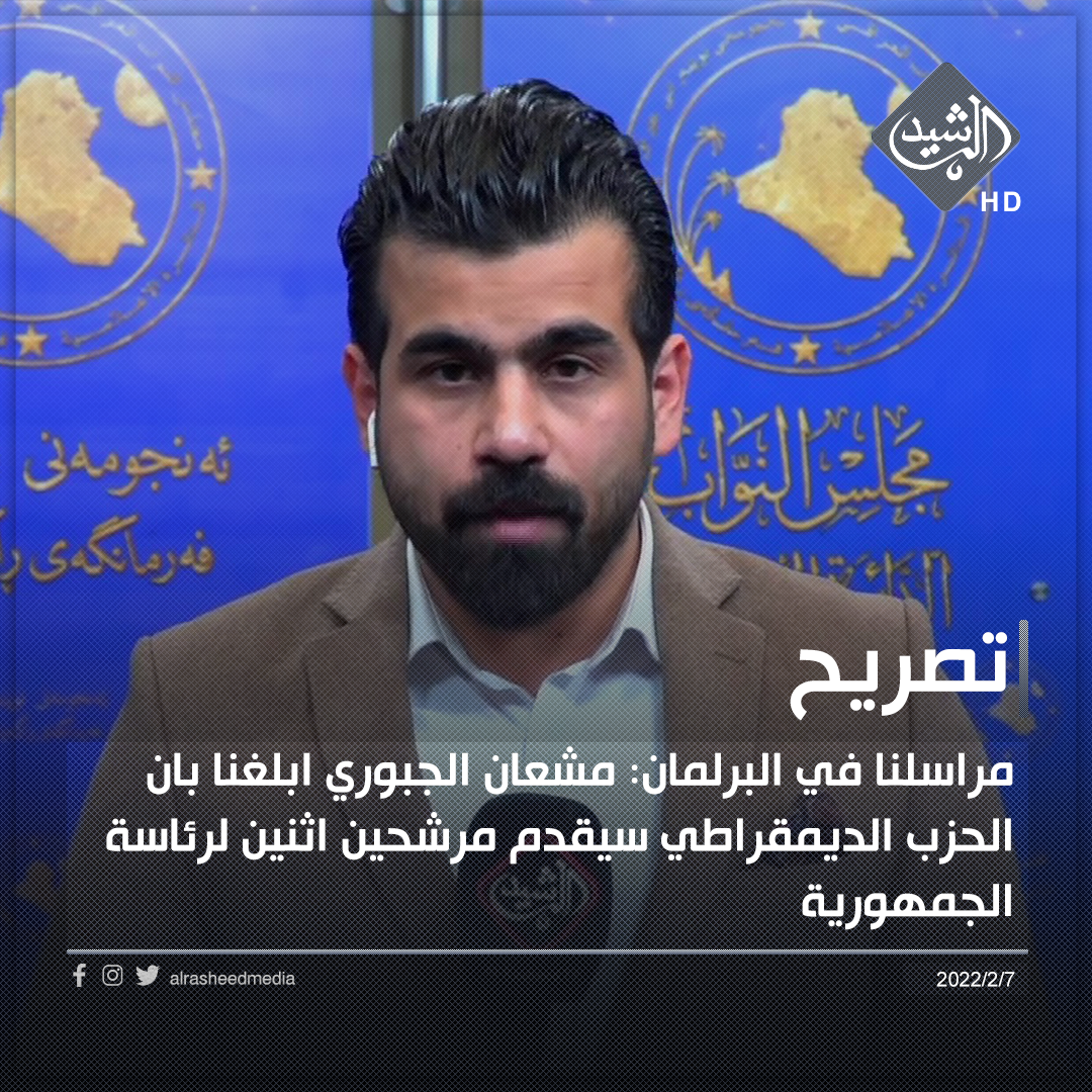 سياسةمراسلنا في البرلمان: مشعان الجبوري ابلغنا بان الحزب الديمقراطي سيقدم مرشحين اثنين لرئاسة الجمهورية قبل 4 سنوات 9 مشاهدات شارك الوسوممشعان الجبوريقد يهمك أيضا عربي ودولي الولايات المتحدة تدفع 3 آلاف دولار لكل مهاجر غير شرعي مقابل مغادرة اراضيها قبل 8 ساعات 10 مشاهدات الحكم الرابع الاهلي يضرب الشرطة بقوة ويزيد من جراحاتهم آسيوياً.. قبل 8 ساعات 11 مشاهدات رياضة الشرطة يخسر أمام الأهلي السعودي بخماسية في دوري أبطال آسيا قبل 8 ساعات 35 مشاهدات سياسة الإعمار والتنمية يقدم وثيقة للإطار التنسيقي تتضمن 5 معايير لاختيار مرشح رئاسة الحكومة قبل 9 ساعات 14 مشاهدات سياسة الإطار التنسيقي يؤكد موقفه الداعم لحصر السلاح بيد الدولة قبل 9 ساعات 10 مشاهدات