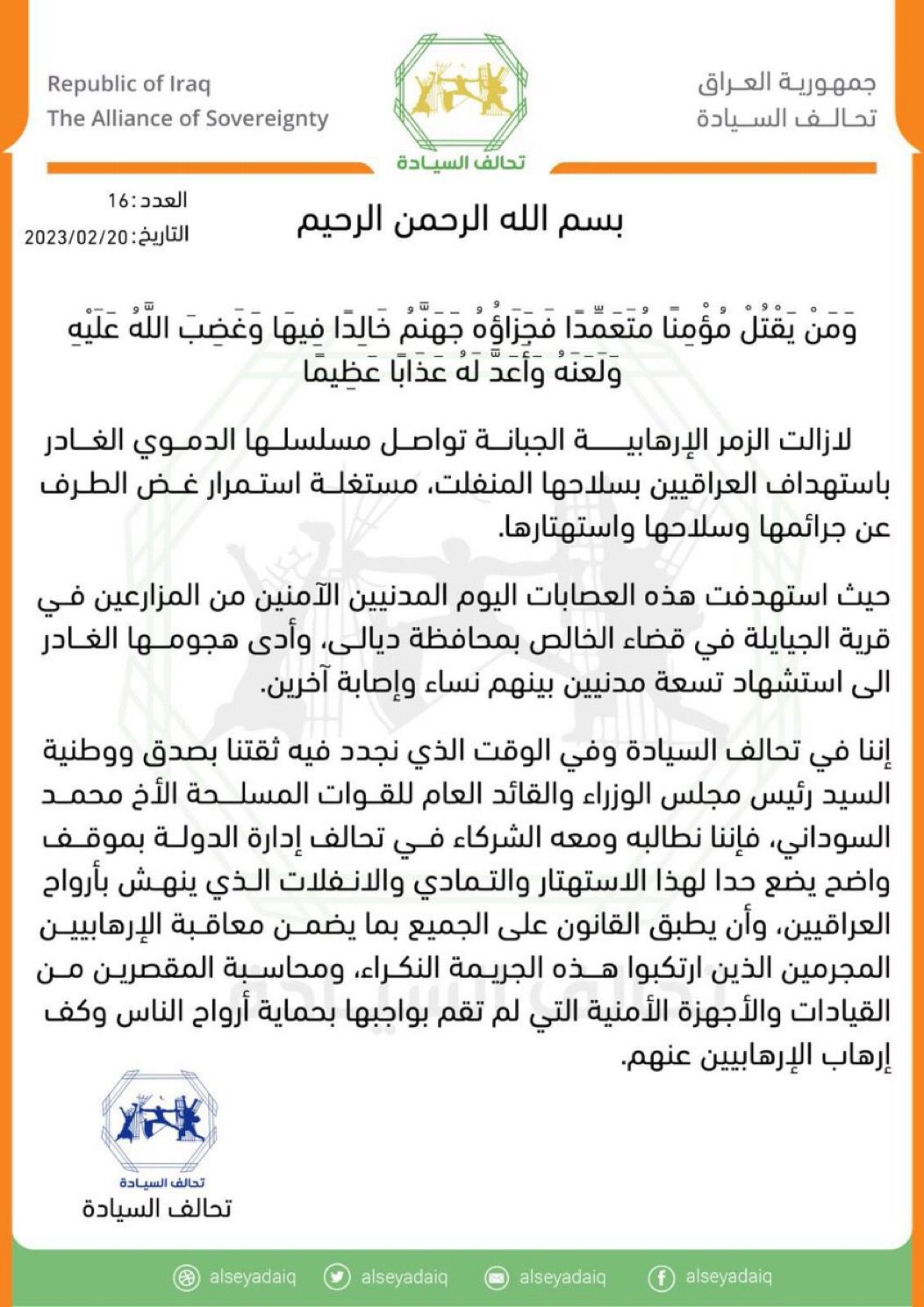 سياسةتحالف السيادة يصدر بياناً بشأن حادثة قرية الجيايلة بقضاء الخالص في ديالى قبل 3 سنوات 5 مشاهدات شارك تحالف السيادة يصدر بياناً بشأن حادثة قرية الجيايلة بقضاء الخالص في ديالى الوسومتحالف السيادةقد يهمك أيضا عربي ودولي إيران تصادر ناقلة نفط تحمل 6 ملايين لتر في خليج عمان قبل 7 ساعات 17 مشاهدات عربي ودولي موسكو: مصادرة الأصول الروسية تطلق برنامج التدمير الذاتي للاتحاد الأوروبي قبل 7 ساعات 9 مشاهدات رياضة منتخب الإمارات يـتأهل لنصف نهائي كـأس العرب بعد تغلبه على الجزائر بركلات الترجيح قبل 7 ساعات 10 مشاهدات رياضة درجال معتذراً للجماهير عن الخروج من كأس العرب: اللاعبون سيعوضون ذلك في آذار المُقبل قبل 8 ساعات 9 مشاهدات رياضة إصابة يزن النعيمات بقطع في الرباط الصليبي قبل 8 ساعات 15 مشاهدات