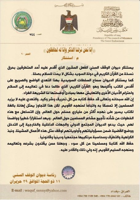 محلياتالوقف السني يستنكر قيام أحد المتطرفين بحرق نسخة من القرآن الكريم في السويد قبل سنتين 7 مشاهدات شارك الوقف السني يستنكر قيام أحد المتطرفين بحرق نسخة من القرآن الكريم في السويدالوقف السني يستنكر قيام أحد المتطرفين بحرق نسخة من القرآن الكريم في السويد الوسومالسويدالقرآن الكريمالوقف السنيقد يهمك أيضا محليات مؤسسة الشهداء: لا قرار بقطع رواتب ذوي الشهداء قبل 25 كانون الثاني قبل 19 دقيقة 3 مشاهدات أقتصاد الذهب يسجل مستوى قياسياً جديداً مع تصاعد التوتر بين أميركا وفنزويلا قبل 31 دقيقة 8 مشاهدات عربي ودولي ترامب: ناقلات النفط المصادرة من فنزويلا ستبقى تحت سيطرتنا قبل ساعة واحدة 6 مشاهدات محليات طقس العراق.. أمطار خفيفة وانخفاض بدرجات الحرارة خلال الأيام المقبلة قبل ساعتين 12 مشاهدات أقتصاد النفط يتراجع مع ترقب خطوة أميركية بشأن خام فنزويل قبل ساعتين 8 مشاهدات