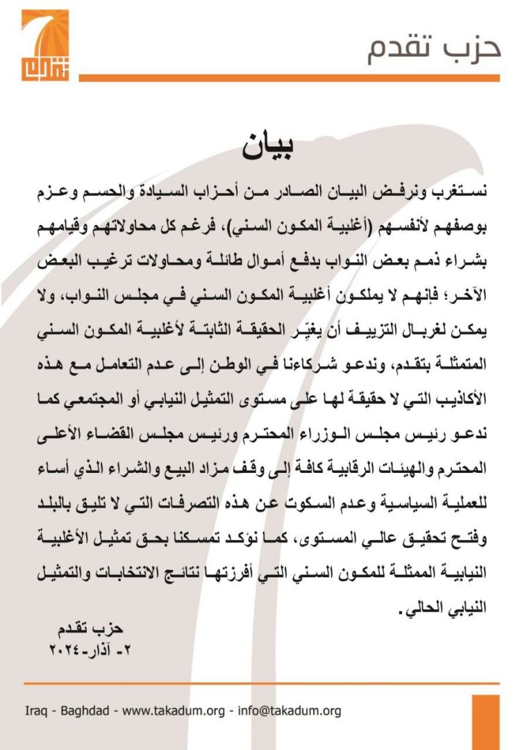 سياسةحزب تقدم: لا يمكن لغربال التزييف أن يغير الحقيقة الثابتة لأغلبية المكون السني المتمثلة بتقدم قبل سنتين 2 مشاهدات شارك حزب تقدمحزب تقدم الوسومحزب تقدمقد يهمك أيضا عربي ودولي سوريا.. توقيف 11 عنصرا من الأمن العام بعد هجوم تدمر قبل 5 دقائق 2 مشاهدات محليات وزير الداخلية: أغلب الجرائم تدار بالطرق الإلكترونية قبل 26 دقيقة 2 مشاهدات عربي ودولي 5 قتلى بإطلاق نار خلال احتفالات بعيد "الحانوكا" بأستراليا قبل 52 دقيقة 5 مشاهدات عربي ودولي كشف تفاصيل هجوم جامعة براون الأميركية.. ومصير المشتبه به قبل ساعة واحدة 7 مشاهدات أقتصاد العمل: صرف تريليون و180 مليار دينار كمنح طلابية قبل ساعتين 11 مشاهدات