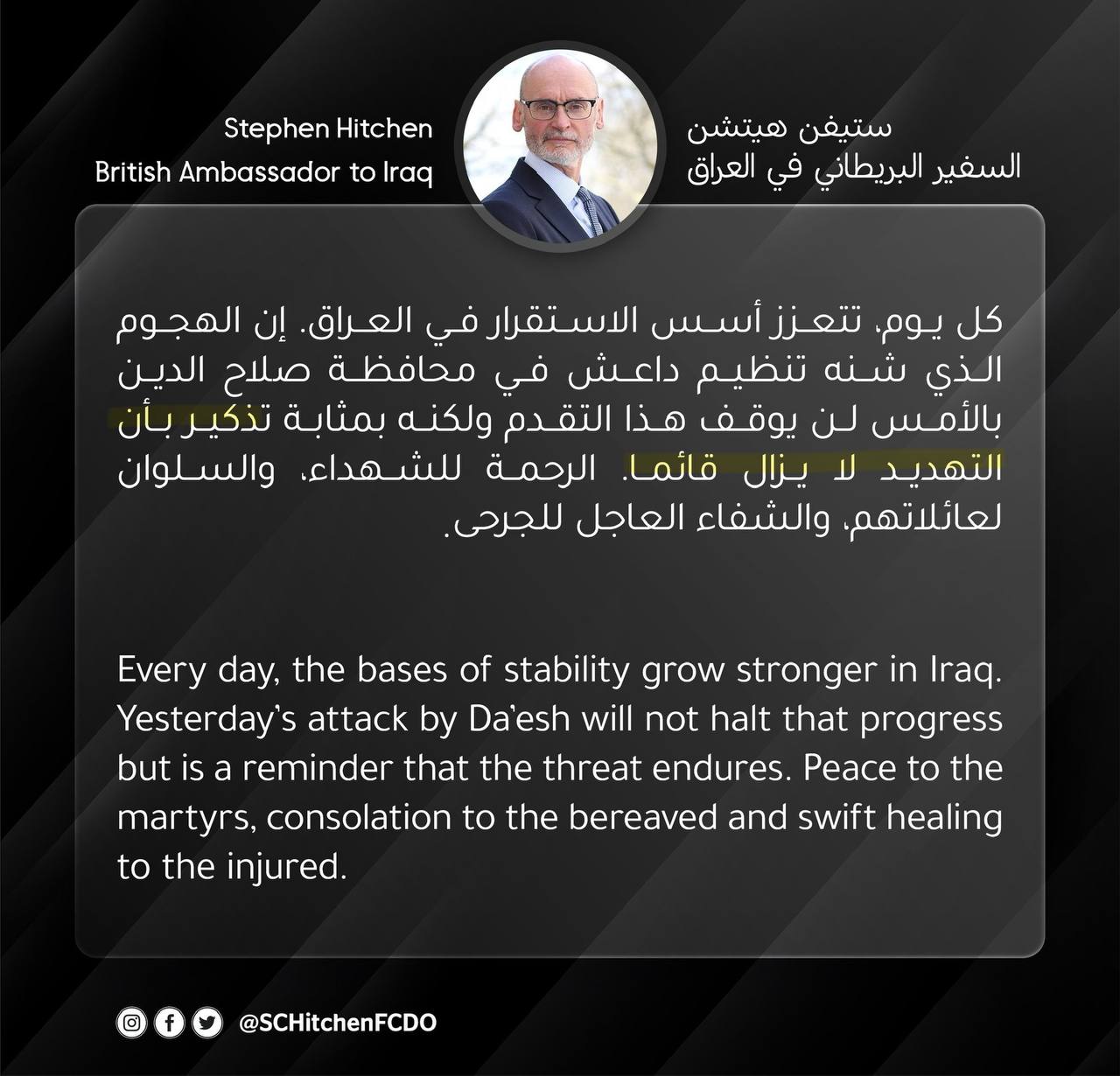 سياسةالسفير البريطاني بشأن هجوم صلاح الدين يوم أمس: تذكير بأن التهديد لايزال قائما قبل سنتين 2 مشاهدات شارك السفير البريطاني بشأن هجوم صلاح الدين يوم أمس: تذكير بأن التهديد لايزال قائماالسفير البريطاني بشأن هجوم صلاح الدين يوم أمس: تذكير بأن التهديد لايزال قائما الوسومالسفير البريطانيقد يهمك أيضا عربي ودولي الولايات المتحدة تدفع 3 آلاف دولار لكل مهاجر غير شرعي مقابل مغادرة اراضيها قبل 5 ساعات 9 مشاهدات الحكم الرابع الاهلي يضرب الشرطة بقوة ويزيد من جراحاتهم آسيوياً.. قبل 5 ساعات 8 مشاهدات رياضة الشرطة يخسر أمام الأهلي السعودي بخماسية في دوري أبطال آسيا قبل 5 ساعات 27 مشاهدات سياسة الإعمار والتنمية يقدم وثيقة للإطار التنسيقي تتضمن 5 معايير لاختيار مرشح رئاسة الحكومة قبل 5 ساعات 13 مشاهدات سياسة الإطار التنسيقي يؤكد موقفه الداعم لحصر السلاح بيد الدولة قبل 6 ساعات 9 مشاهدات