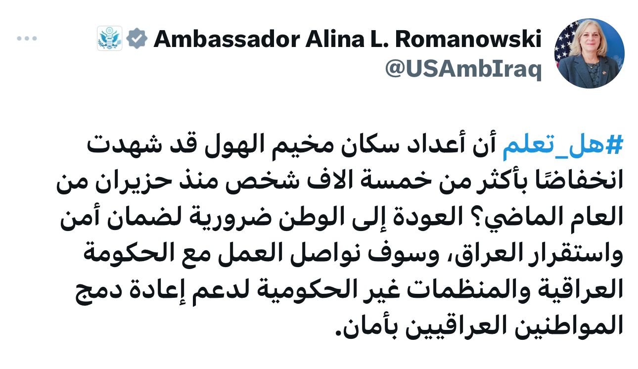 سياسةالسفيرة الامريكية: أعداد سكان مخيم الهول انخفضت بأكثر من 5 الاف شخص منذ حزيران من العام الماضي قبل سنة واحدة 12 مشاهدات شارك السفيرة الامريكيةالسفيرة الامريكية: أعداد سكان مخيم الهول انخفضت بأكثر من 5 الاف شخص منذ حزيران من العام الماضي الوسومالسفيرة الامريكيةقد يهمك أيضا عربي ودولي إيران تصادر ناقلة نفط تحمل 6 ملايين لتر في خليج عمان قبل 7 ساعات 17 مشاهدات عربي ودولي موسكو: مصادرة الأصول الروسية تطلق برنامج التدمير الذاتي للاتحاد الأوروبي قبل 7 ساعات 9 مشاهدات رياضة منتخب الإمارات يـتأهل لنصف نهائي كـأس العرب بعد تغلبه على الجزائر بركلات الترجيح قبل 7 ساعات 10 مشاهدات رياضة درجال معتذراً للجماهير عن الخروج من كأس العرب: اللاعبون سيعوضون ذلك في آذار المُقبل قبل 8 ساعات 9 مشاهدات رياضة إصابة يزن النعيمات بقطع في الرباط الصليبي قبل 8 ساعات 15 مشاهدات