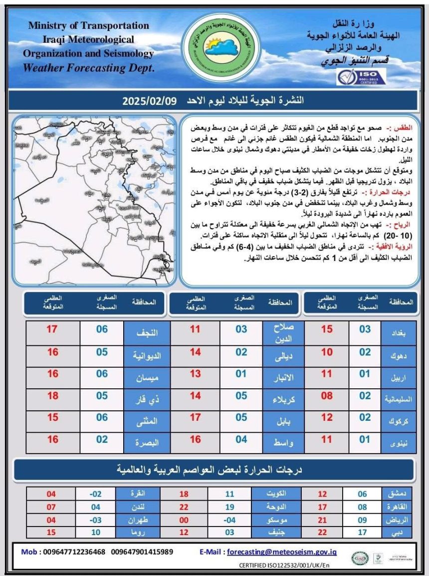 طقس العراق.. أمطار متفرقة وارتفاع درجات الحرارة خلال الأيام المقبلة طقس العراق.. أمطار متفرقة وارتفاع درجات الحرارة خلال الأيام المقبلة طقس العراق.. أمطار متفرقة وارتفاع درجات الحرارة خلال الأيام المقبلة أعلنت هيئة الأنواء الجوية، حالة طقس العراق خلال الأيام المقبلة، فيما أشارت إلى أمطار متفرقة وارتفاع درجات الحرارة.