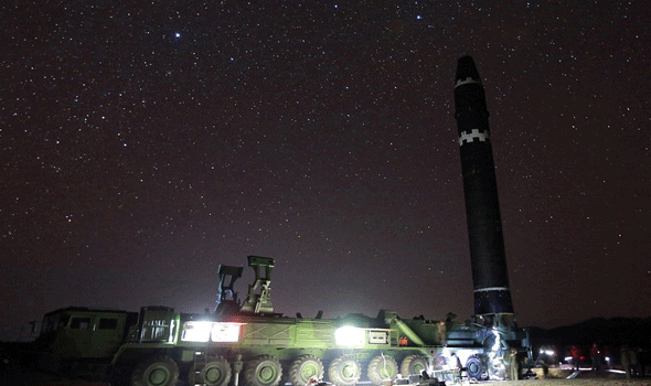 احتفلت كوريا الشمالية، في ساحة كيم ايل سونغ بإطلاق صاروخ بالستي جديد، الذي تم تطويره مؤخرا، والذي يقول بعض الخبراء إنه يمتلك القدرة على الوصول إلى كل الأراضي الأميركية.
