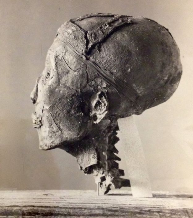 ولم تُنشر بعض الصور للتداول العام نظرا لاستخدامها العلمي لأغراض علماء الآثار. وتظهر الصورة بأعلى رأس توت عنخ آمون المحنطة على لوح خشبي قديم.