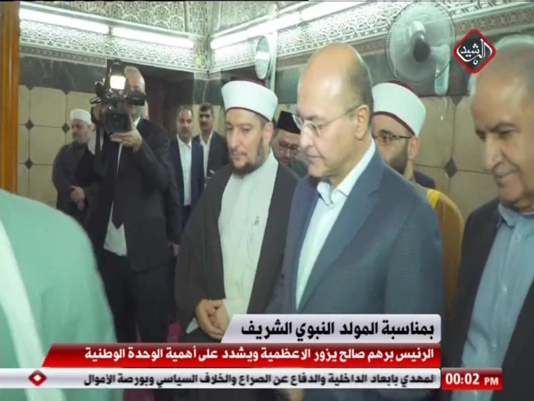 بمناسبة مولد سيد الكائنات الرسول محمد ( ص ) زار رئيس الجمهورية برهم صالح منطقة الاعظمية وسط بغداد