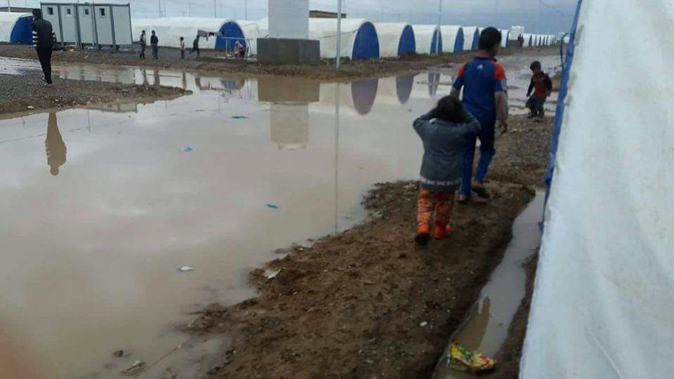 عضو مفوضية حقوق الانسان فاضل الغراوي قال إن ألف وخمسمئة خيمة تعرضت للغرق والانجراف بسبب الأمطار في مخيمات المدرج والجدعة في محافظة نينوى. وطالب الغراوي، الحكومة باعلان حالة الكارثة الانسانية في مدينة الشرقاط ومخيمات النازحين جنوب الموصل بسبب السيول والامطار.