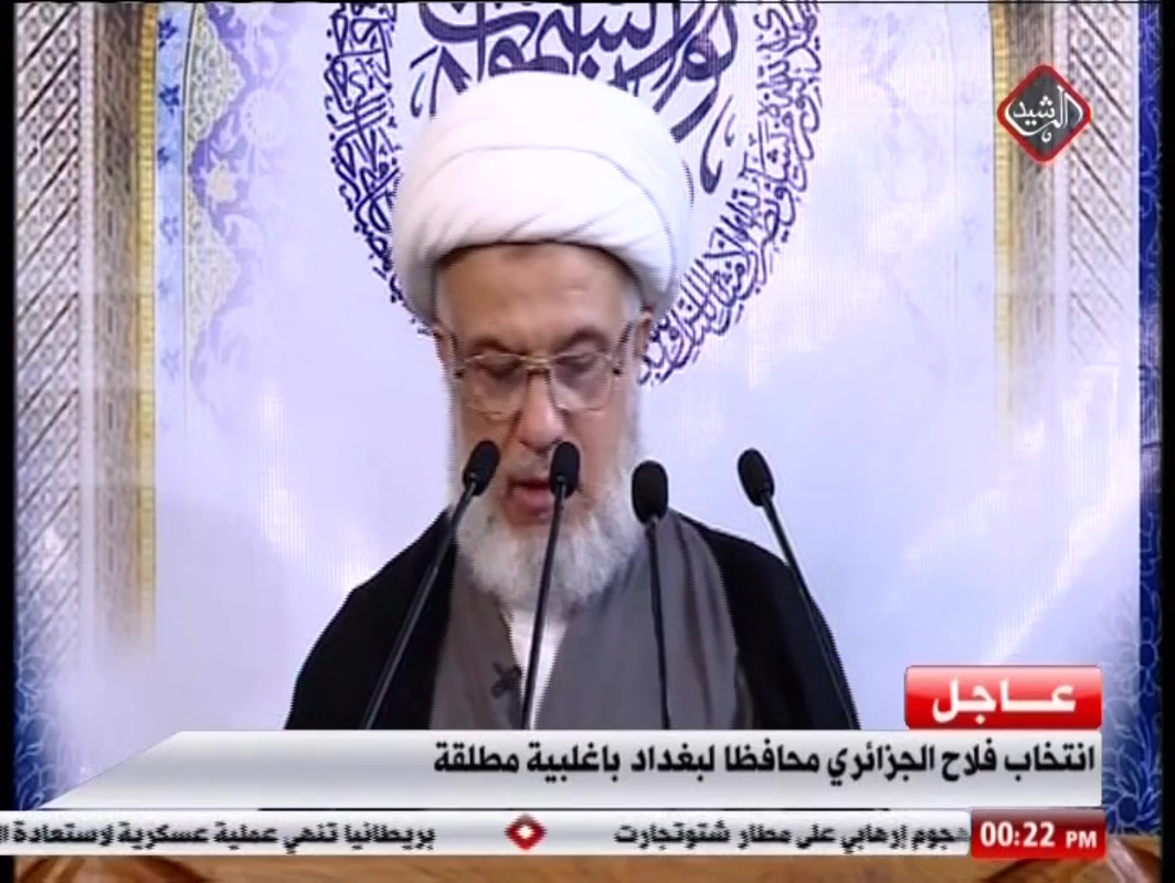 ممثل المرجعية الشيخ عبد المهدي الكربلائي قال خلال خطبة صلاة الجمعة في كربلاء ان الذي يؤثر مصالح بلده على مصالح حزبه ويعتبر مصلحة البلد مقدمة على مصالحه الحزبية والشخصية، جدير بالثقة بوطنيته، ومن هو عكس ذلك غير جدير بالثقة وسيسهم بانعدام الاستقرار والسلم والأمان في البلد، موضحا أن بعض المجتمعات ومنها المجتمع العراقي تعاني من تقديم المصالح الخاصة على المصالح العامة في الكثير من شؤون الحياة.