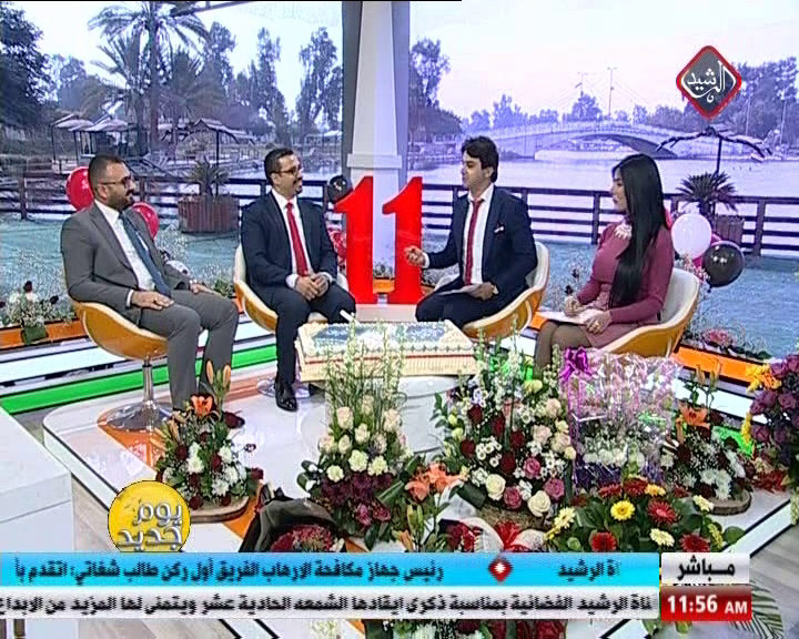 يوم جديدمدير البرامج والانتاج محمد الحبوبي ومدير الأخبار ادريس جواد في قناة الرشيد الفضائية قبل 7 سنوات 5 مشاهدات شارك قد يهمك أيضا عربي ودولي وزير الدفاع الإسرائيلي: لن نسمح بأي تهديد إيراني ولن ننسحب من جبل الشيخ قبل 3 دقائق 2 مشاهدات سياسة القاضي فائق زيدان: استقلال القضاء هو حجر الزاوية في أي نظام ديمقراطي حقيقي قبل ساعة واحدة 5 مشاهدات سياسة رئيس مجلس القضاء: محكمة التمييز تمثل قمة الهرم القضائي ورمزاً للاستقرار القانوني في العراق قبل ساعة واحدة 6 مشاهدات أمن عمليات بغداد تعيد فتح طريق مغلق بمنطقة العرصات وسط العاصمة قبل ساعتين 6 مشاهدات محليات الداخلية: إيقاف العمل في مديرية الأحوال المدنية والجوازات والإقامة حتى 4 كانون الثاني 2026 قبل 3 ساعات 13 مشاهدات