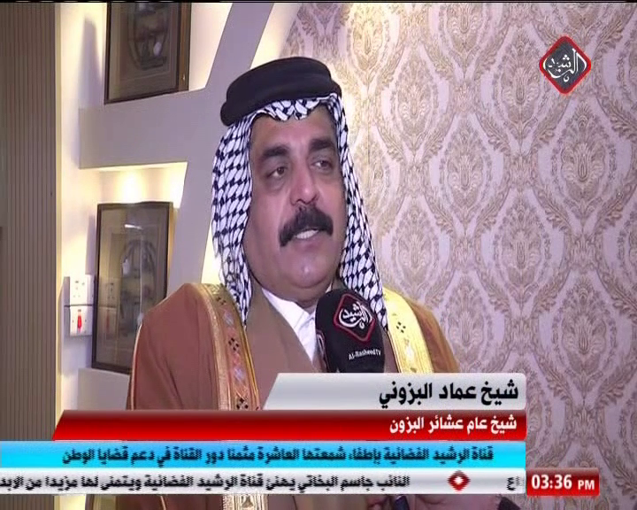 قدم عدد من المسؤولين وشيوخ عشائر واعلاميين وتربوين التهاني الى قناة الرشيد الفضائية بمناسبة تأسيس قناة الرشيد الفضائية الحادية عشرة