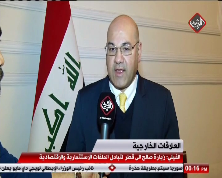 الفيلي: زيارة صالح الى قطر لتبادل الملفات الاستثمارية والاقتصادية