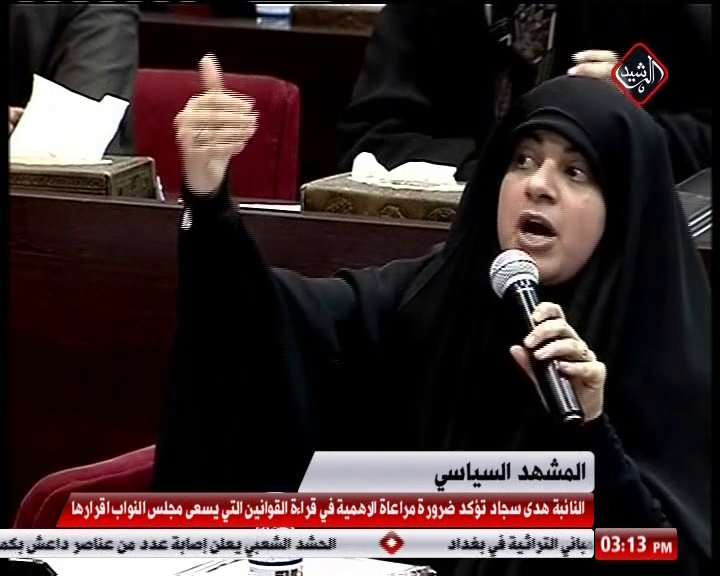 قراءة: النائبة هدى سجاد تؤكد ضرورة مراعاة الاهمية في قراءة القوانين التي يسعى مجلس النواب اقرارها