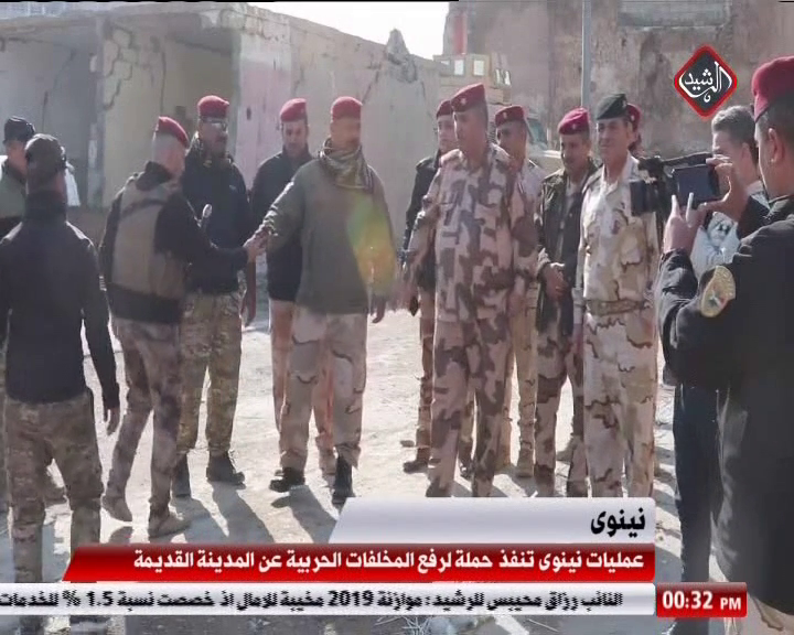 نفذت قيادة عمليات نينوى والفرق العسكرية المنضوية معها حملة لرفع المخلفات الحربية عن المدينة القديمة في الموصل التي لا زالت مليئة بمخلفات داعش، والتي تزامنت مع عمل فرق الدفاع المدني لانتشال الجثث المجهولة الهوية من المنطقة ذاتها..