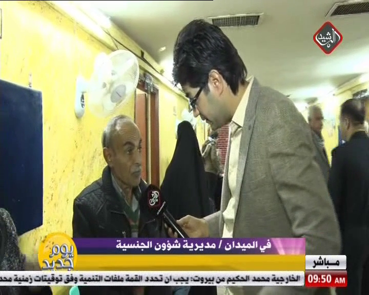 يوم جديدفي الميدان / مديرية شؤون الجنسية 2019/1/22 قبل 7 سنوات 2 مشاهدات شارك قد يهمك أيضا محليات طقس العراق.. أمطار خفيفة وانخفاض بدرجات الحرارة خلال الأيام المقبلة قبل دقيقتان 2 مشاهدات أقتصاد النفط يتراجع مع ترقب خطوة أميركية بشأن خام فنزويل قبل 26 دقيقة 5 مشاهدات عربي ودولي الولايات المتحدة تدفع 3 آلاف دولار لكل مهاجر غير شرعي مقابل مغادرة اراضيها قبل 9 ساعات 10 مشاهدات الحكم الرابع الاهلي يضرب الشرطة بقوة ويزيد من جراحاتهم آسيوياً.. قبل 10 ساعات 11 مشاهدات رياضة الشرطة يخسر أمام الأهلي السعودي بخماسية في دوري أبطال آسيا قبل 10 ساعات 39 مشاهدات