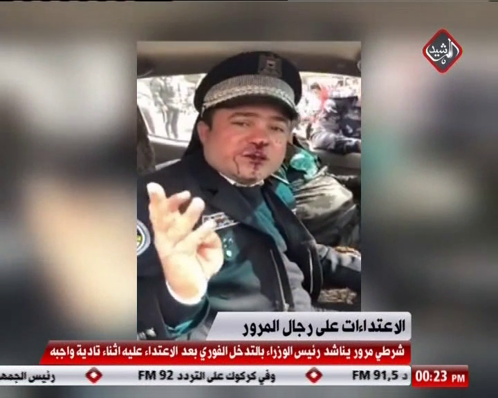 وبحسب مقطع الفديو … ناشد رجل المرور رئيس الوزراء ووزارة الداخلية ومدير مديرية المرور العامة بالتدخل الفوري لاخذ حقه من الاشخاص الذين اعتدوا عليه اثناء تاديته لواجبه وامام جمهرة من المواطنيين.