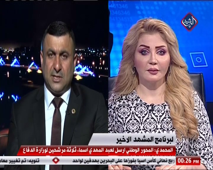 كشف النائب عن المحور الوطني يحيى المحمدي عن ارسال كتاب الى رئيس الوزراء عادل عبد المهدي يتضمن اسماء مرشحي وزارة الدفاع الثلاث وهم سليم الجبوري وكريم ابو سودة وهشام الدراجي