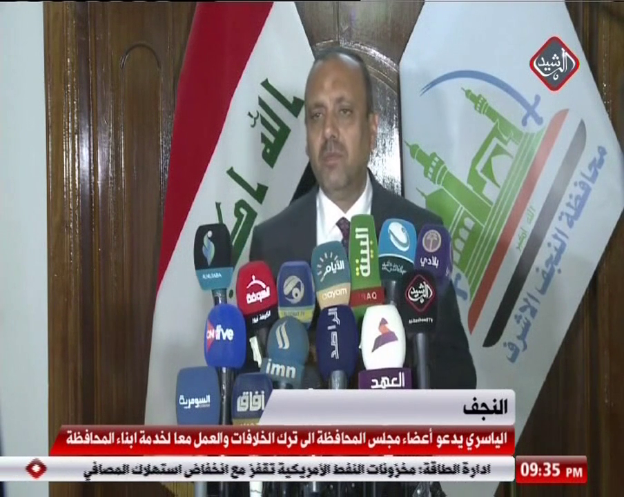 دعا محافظ النجف لؤي الياسري، أعضاء مجلس المحافظة ورئاسة المجلس الى ترك الخلافات والعمل معاً لخدمة ابناء المحافظة.