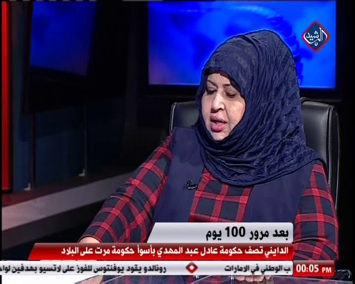 وصفت النائبة عن تحالف المحور الوطني ناهدة الدايني حكومة رئيس الوزراء عادل عبد المهدي باسوء حكومة ولم تاتي مثلها وزارة سابقا، مشيرة الى ان عبد المهدي هو من يتحمل تاخر تشكيل الكابينة الوزارية.
