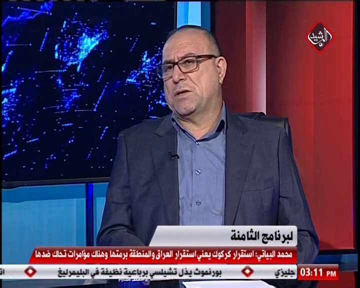 اكد القيادي في بدر محمد البياتي ان لبرنامج الثامنة ان كركوك لها خصوصية واستقرارها يعني استقرار العراق والمنطقة برمتها، معتقدا وجود مؤامرات جعلت من كركوك تعيش حالة عدم الاستقرار، ومبديا اسفه ان تتم مناقشة بدايات التعايش السلمي في كركوك في هذا الوقت المتاخر..