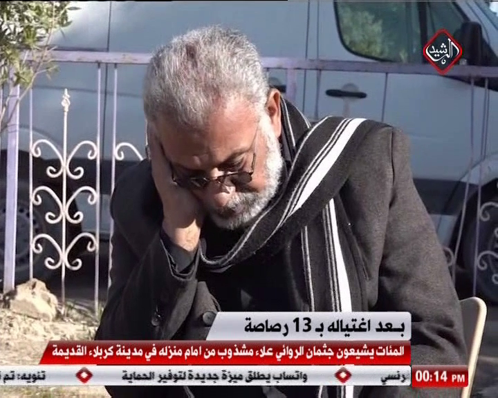 المئات يشيعون جثمان الروائي علاء مشذوب من امام منزله في مدينة كربلاء القديمة
