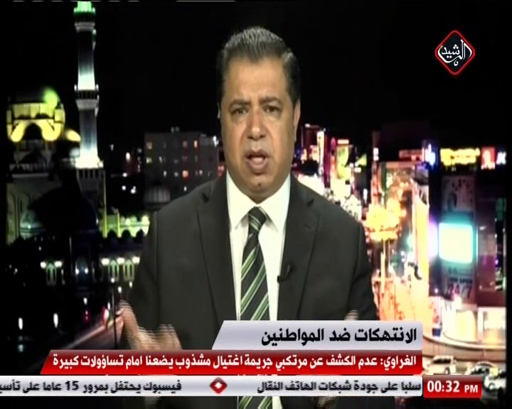 قال عضو مفوضية حقوق الإنسان في العراق فاضل الغراوي عبر برنامج الثامنة ان عدم قدرة القوات الامنية من معرفة الجناة الذين استهدفوا الكاتب والروائي علاء مشذوب رغم وجود منظومة امنية متكاملة في لالمحافظة يضعنا امام تساؤولات كثيرة وكبيرة