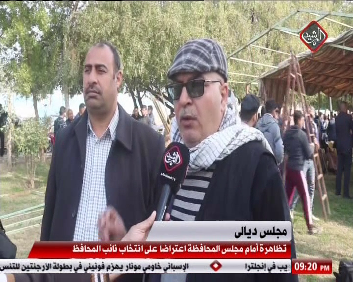 تظاهر العشرات أمام مجلس ديالى اعتراضا على انتخاب نائب المحافظ المتهم بقضايا فساد وهدر المال العام.