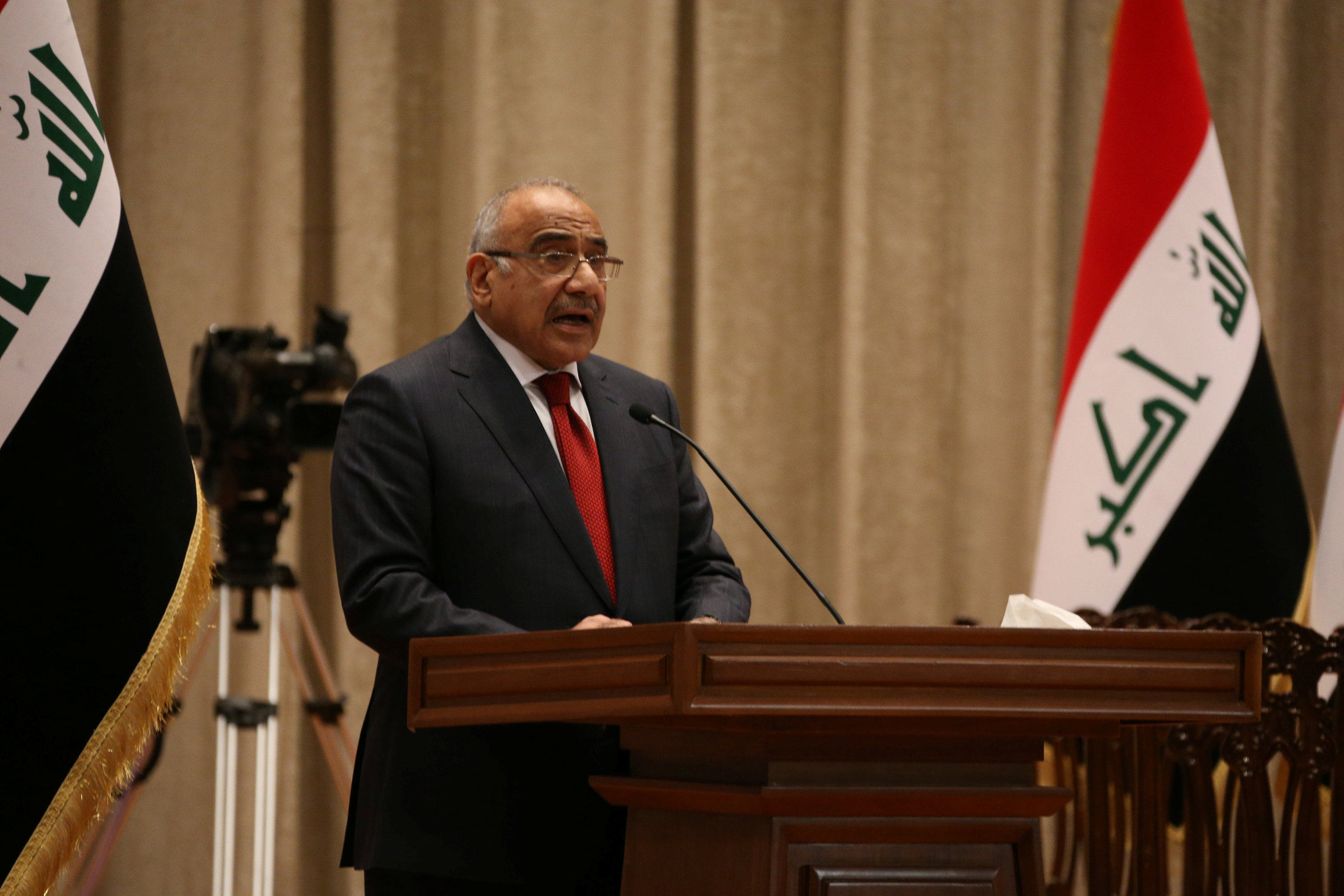 Iraq's Prime Minister-designate Adel Abdul Mahdi speaks to parliament he announces his new cabinet at the parliament headquarters in Baghdad, Iraq October 24, 2018. Iraqi Parliament Office/Handout via REUTERS ATTENTION EDITORS - THIS PICTURE WAS PROVIDED BY A THIRD PARTY. NO RESALES. NO ARCHIVE.