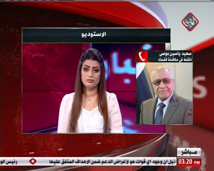 محلياتالنزاهة تعلن إحالة أحد عشر وزيراً للقضاء .. الناشط في مكافحة الفساد السيد سعيد ياسين موسى قبل 7 سنوات 4 مشاهدات شارك قد يهمك أيضا الاخبار العاجلة ارتفاع أسعار الصرف في الأسواق المحلية: 143500 دينار مقابل كل 100 دولار قبل دقيقتان أمن القضاء يسترد ملياري دينار عن جريمة احتيال مالي قبل 28 دقيقة 5 مشاهدات أقتصاد مالية الإقليم: إيداع 120 مليار دينار من الإيرادات غير النفطية بحساب المالية الاتحادية قبل 41 دقيقة 5 مشاهدات أمن قائد عمليات بغداد: خطة تأمين أعياد الميلاد ورأس السنة لا تتضمن أي قطوعات قبل 45 دقيقة 8 مشاهدات محليات رئيسا مجلس القضاء والوقف السني يناقشان الإجراءات القانونية الخاصة بالدعاوى المعروضة على المحاكم قبل ساعة واحدة 9 مشاهدات