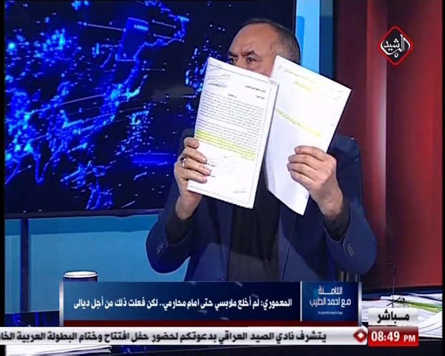 الثامنةالمعموري يوجه رسالة لجماهير ديالى: إذا لم تخرجوا فأنتم موتى ولا خير فيكم …! قبل 7 سنوات 5 مشاهدات شارك قد يهمك أيضا أمن القضاء يسترد ملياري دينار عن جريمة احتيال مالي قبل 22 دقيقة 5 مشاهدات أقتصاد مالية الإقليم: إيداع 120 مليار دينار من الإيرادات غير النفطية بحساب المالية الاتحادية قبل 35 دقيقة 5 مشاهدات أمن قائد عمليات بغداد: خطة تأمين أعياد الميلاد ورأس السنة لا تتضمن أي قطوعات قبل 39 دقيقة 7 مشاهدات محليات رئيسا مجلس القضاء والوقف السني يناقشان الإجراءات القانونية الخاصة بالدعاوى المعروضة على المحاكم قبل ساعة واحدة 9 مشاهدات عربي ودولي تحقيق جديد يكشف تفاصيل صادمة.. 8482 جوهرة مسروقة في وضح النهار من اللوفر قبل ساعة واحدة 5 مشاهدات