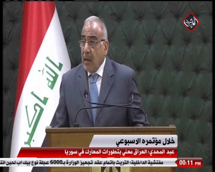 اشار عبد المهدي الى ان العراق معني بتطورات المعارك في سوريا وتطهير اخر جيب من تنظيم داعش، مؤكدا ان كل القوات الموجودة على ارض البلاد هي عراقية ولا وجود لقواعد اجنبية، موضحا في الوقت نفسه ان مجلس النواب يدرس مستقبل التواجد الاجنبي في العراق من اجل انهاء الجدل بشأنه