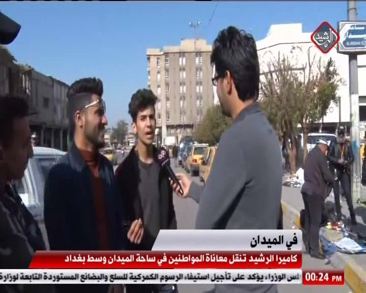 تجولت كاميرا الرشيد في ساحة الميدان وسط العاصمة بغداد ونقلت معاناة المواطنين الذين طالبوا الحكومة والجهات ذات العلاقة بدعم الطبقة الكادحة وتلبية احتياجهم