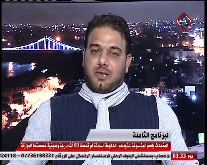 اكد المتحدث باسم المفسوخة عقودهم ماجد عذاب في تصريح لبرنامج الثامنة ان الحكومة السابقة لم تعطي لموظفي العقود ستين ألف درجة وظيفية التي خصصتها الموازنة، مشيرا الى ان عدد المفسوخة عقودهم منذ الفين وثلاثة لا يتجاوز اربعين ألفاً.