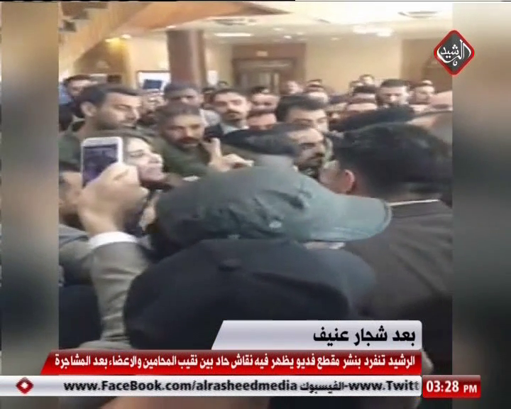 الرشيد تنفرد بنشر مقطع فديو يظهر فيه نقاش حاد بين نقيب المحامين والاعضاء بعد المشاجرة