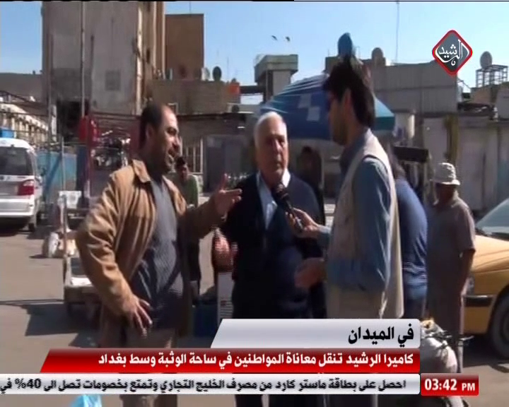 تجولت كاميرا الرشيد في ساحة الوثبة وسط العاصمة بغداد لنقل معاناة المواطنين الذين عبروا عن استيائهم من قلة الخدمات، مطالبين الحكومة بالتحرك السريع لتحسين اوضاع الشعب وتوفير فرص العمل للشباب العاطلين