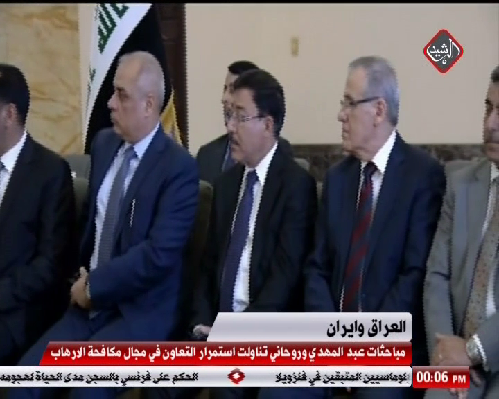 عبد المهدي قال في مؤتمر صحفي مشترك مع روحاني ان جلسة المباحثات المشتركة تناولت استمرار التعاون في مجال مكافحة الارهاب وتعزيز جهود الأمن والاستقرار، فضلا عن سبل التعاون مع ايران في المجالات الاقتصادية والتجارية والعديد من الملفات المشتركة