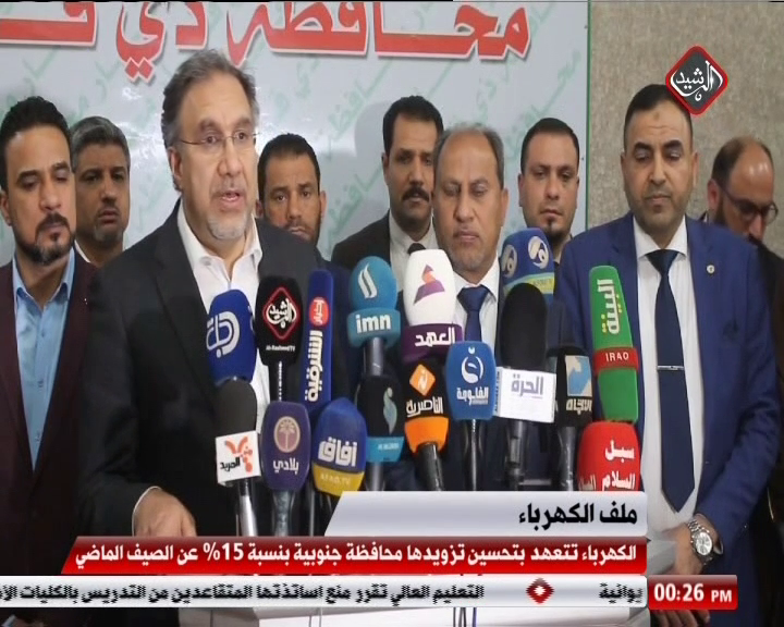 قال وزير الكهرباء لؤي الخطيب خلال مؤتمر صحفي مشترك مع محافظ ذي قار يحيى الناصري ان نسبة التحسن في جميع قطاعات الانتاج والنقل والتوزيع ستكون خمسة عشر بالمئة عن العام الماضي في اطار الحلول التي وضعتها الوزارة وضمن صلاحياتها وتخصيصاتها لهذا العام