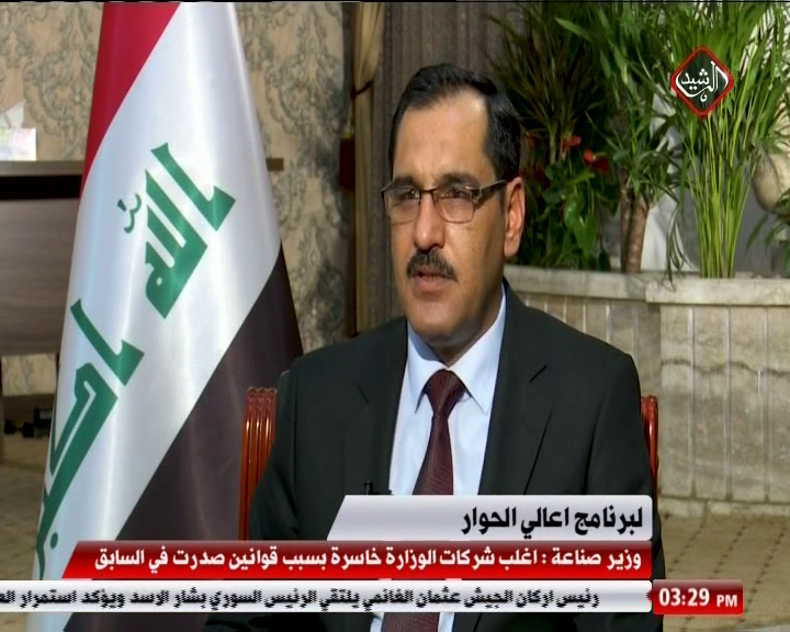 اكد وزير الصناعة صالح الجبوري في تصريح خاص لبرنامج اعالي الحوار ان اغلب شركات الوزارة خاسرة من الناحية المادية بسبب قوانين صدرت في السابق بدعوى الاصلاح ومعالجة الترهل الوظيفي وكذلك دمج الشركات الذي اثر سلباً على الكلفة الانتاجية نتيجة ازدياد عدد العاملين فيها