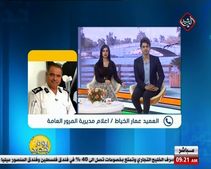 يوم جديدالعميد عمار الخياط عبر الهاتف مع قناة الرشيد ويشرح عن حركة السير لهذا اليوم 2019/3/25 قبل 7 سنوات 3 مشاهدات شارك قد يهمك أيضا سياسة البطريركية الكلدانية توضح بشأن ما تداولته بعض المواقع والصفحات من تصريحات لويس ساكو قبل 9 دقائق 6 مشاهدات عربي ودولي الداخلية السورية: اعتقال زعيم تنظيم داعش بدمشق في عملية أمنية بالتعاون مع التحالف الدولي قبل 41 دقيقة 9 مشاهدات سياسة السيد الصدر: لا مكان للتطبيع ولا لشرعنته في العراق قبل ساعة واحدة 7 مشاهدات عربي ودولي الحرس الثوري الإيراني يوقف سفينة محملة بـ4 ملايين لتر من الوقود المهرب في مياه الخليج قبل ساعتين 9 مشاهدات عربي ودولي الجيش الأردني يشن غارات استهدفت شبكات تهريب ومزارع مخدرات بريف السويداء قبل ساعتين 6 مشاهدات