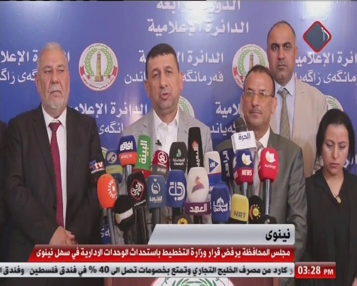 بعد القرار الذي تسعى تطبيقه وزارة التخطيط بالاستحداث الوحدات الادارية في سهل نينوى، عقده رئيس مجلس محافظة نينوى ومحافظها مؤتمرا اعلنا فيه رفض الحكومة المحلية للقرار لكونه يعد التفافا على حقوق المكونات التي تعيش في تلك المناطق