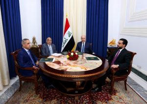 عقد رئيس الجمهورية برهم صالح اجتماعاً في قصر السلام ببغداد، اليوم الأحد 10 -11-2019، حضره كلٌّ من رئيس مجلس الوزراء عادل عبد المهدي ورئيس مجلس النواب محمد الحلبوسي ورئيس مجلس القضاء الأعلى فائق زيدان.