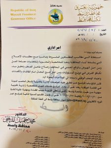 قراءة: بالوثيقة والصور .. تغييرات ادارية في واسط وتظاهرات منددة بالاتفاق السياسي لقادة الكتل