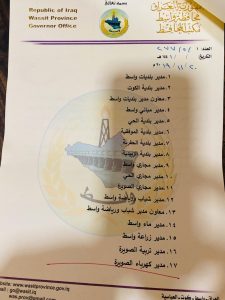 اجرى محافظ واسط محمد المياحي سلسلة تغييرات في المناصب الادارية المهمة بالمحافظة.