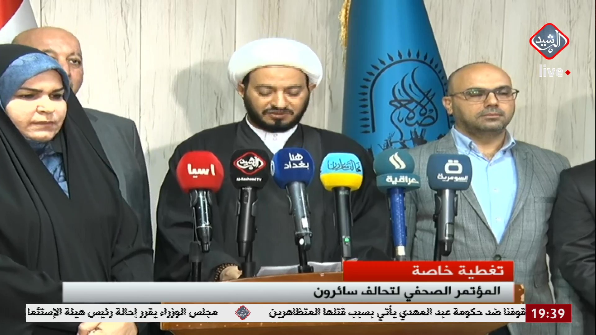 رئيس كتلة سائرون النيابية صباح الساعدي قال في مؤتمر صحفي ان اي اتفاق للقوى السياسية ضد الشعب هو اتفاق باطل، مؤكدا المضي باستجواب رئيس الوزراء والطلب من رئيس البرلمان بتحديد موعد له باسرع وقت ممكن.