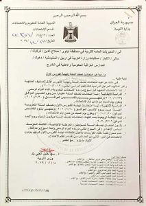 وتابع، بخصوص موعد الامتحانات لمديريات محافظة (نينوى ، صلاح الدين ، كركوك ، ديالى ، الانبار ، ممثليات وزارة التربية في اربيل والسليمانية ودهوك ، بالإضافة الى المدارس العراقية الحكومية والأهلية في الخارج) ، ستبدأ امتحانات الابتدائية لنصف السنه اعتباراً من يوم الخميس الموافق 23/1/2020 وتنتهي يوم الخميس الموافق 30/1/2020 ويكون يوم السبت من ضمن ايام الامتحانات ، والدراسة الثانوية ستكون امتحانات نهاية الكورس الاول ونصف السنة التحريرية يوم الاثنين الموافق 20/1/2020 وتنتهي الخميس 30/1/2020 ويكون يوم السبت من ضمن ايام الامتحانات أيضاً .