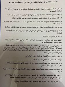 الاخبار العاجلةبالوثائق .. متظاهرو ذي قار يعلنون عن مطالبهم قبل 6 سنوات 10 مشاهدات شارك قد يهمك أيضا محليات المرور تعلن قطع بعض الطرق وسط بغداد تزامناً مع الاستقبال الشعبي للمنتخب الوطني قبل 3 ساعات 11 مشاهدات عربي ودولي إعلام أمريكي: استمرار البحث عن الطيار الثاني في إيران قبل 4 ساعات 13 مشاهدات عربي ودولي ولي العهد السعودي يبحث مع رئيسة وزراء إيطاليا تنسيق الجهود بما يعزز أمن المنطقة واستقرارها قبل 4 ساعات 9 مشاهدات محليات التربية تنفي إصدار قرار بنقل المدارس القريبة من مقار الحشد الشعبي قبل 4 ساعات 10 مشاهدات رياضة السوداني يستقبل لاعبي المنتخب الوطني الكروي قبل 4 ساعات 13 مشاهدات