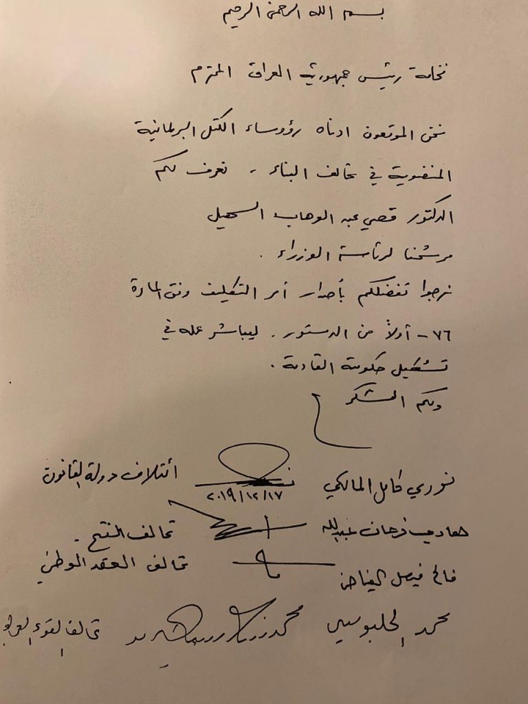 الاخبار العاجلةبالوثائق .. تحالف البناء يقدم طلباً رسمياً لرئيس الجمهورية لتكليف قصي السهيل برئاسة الوزراء قبل 6 سنوات 13 مشاهدات شارك قد يهمك أيضا أقتصاد ارتفاع أسعار الصرف في الأسواق المحلية: 155250 دينارا لكل 100 دولار قبل 12 دقيقة 3 مشاهدات عربي ودولي طهران: الهجمات الإسرائيلية والأمريكية على إيران ألحقت أضرارا بـ25 منشأة دوائية قبل 14 دقيقة 5 مشاهدات عربي ودولي قائد الدفاع الجوي الإيراني: نستخدم معدات جديدة لمطاردة طائرات العدو قبل 34 دقيقة 5 مشاهدات عربي ودولي واشنطن تكشف عن مدمرة من الجيل الثالث لتعزيز الدفاع ضد الصواريخ الباليستية قبل 54 دقيقة 4 مشاهدات الاخبار العاجلة انطلاق الحافلة المكشوفة الخاصة بنقل لاعبي المنتخب الوطني وسط بغداد قبل ساعة واحدة 10 مشاهدات