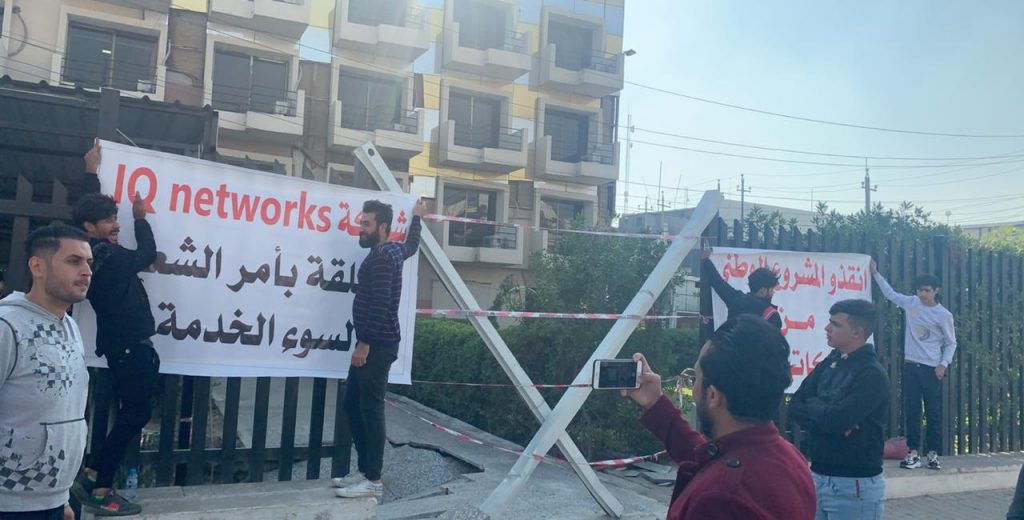 تظاهر العشرات من اصحاب شركات الانترنت الاهلية، اليوم السبت، امام شركة الكابل الضوئي المتعاقدة مع وزارة الاتصالات احتجاجاً على سوء الخدمة.
