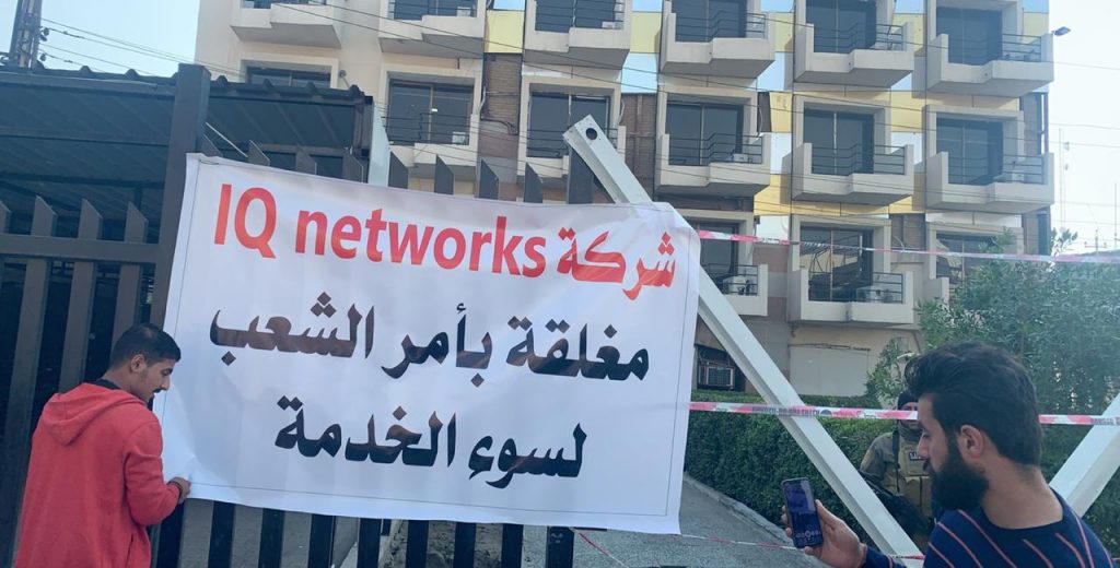وقال مراسل الرشيد، ان العشرات من اصحاب شركات الانترنت الاهلية ومزودوا الخدمة ممن وقعوا عقوداً، تظاهروا امام شركة الكابل الضوئي (أي كيو) المتعاقدة مع وزارة الاتصالات، في منطقة الجادرية وسط بغداد احتجاجاً على سوء خدمة الانترنت.