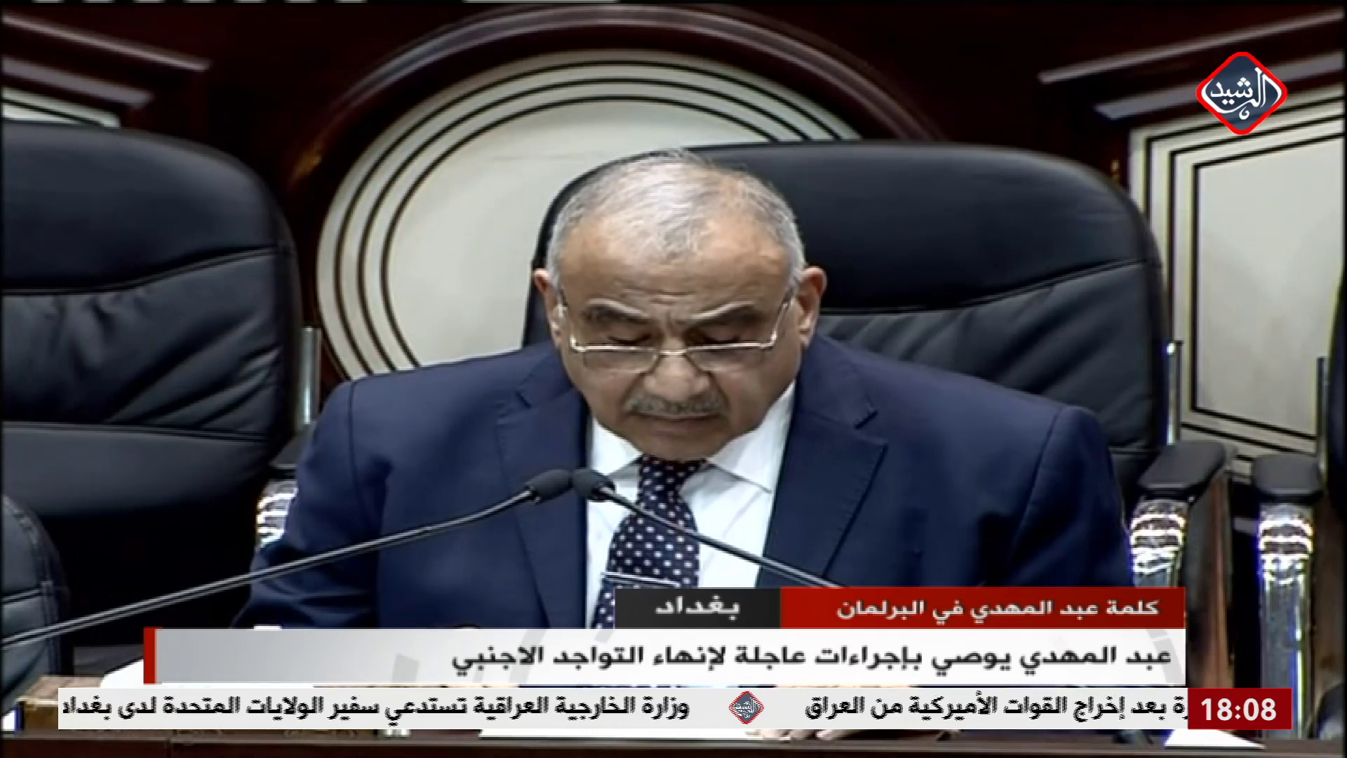 قال رئيس حكومة تصريف الأعمال عادل عبد المهدي إن انهاء التواجد الاجنبي في العراق، سيصب في مصلحة البلاد، فيما اقترح خيارين للتعامل مع القوات الاجنبية.