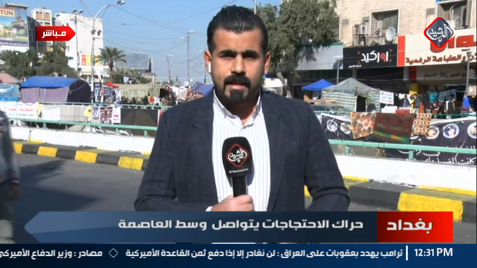 محلياتمراسل الرشيد جابر جمال من ساحة التحرير قبل 6 سنوات 7 مشاهدات شارك قد يهمك أيضا عربي ودولي وسط الأزمة مع الصين.. عقيدة اليابان النووية تهدد بتأجيج توتر سياسي جديد في شرق آسيا قبل 7 دقائق 3 مشاهدات سياسة رئيس حزب تقدم الرئيس محمد الحلبوسي يلتقي رئيس مجلس الوزراء الأسبق عادل عبد المهدي قبل 31 دقيقة 5 مشاهدات محليات السفارة العراقية في ليبيا: استكمال إجراءات العودة الطوعية لـ70 عراقياً دخلوا بشكل غير شرعي قبل 50 دقيقة 6 مشاهدات عربي ودولي الأمم المتحدة: تفكيك الإنتاج الضخم للكبتاغون في سوريا قبل ساعة واحدة 7 مشاهدات محليات المحكمة الاتحادية: اعتماد الدفع الإلكتروني باستيفاء رسوم الدعاوى ابتداءً من العام المقبل قبل ساعة واحدة 9 مشاهدات